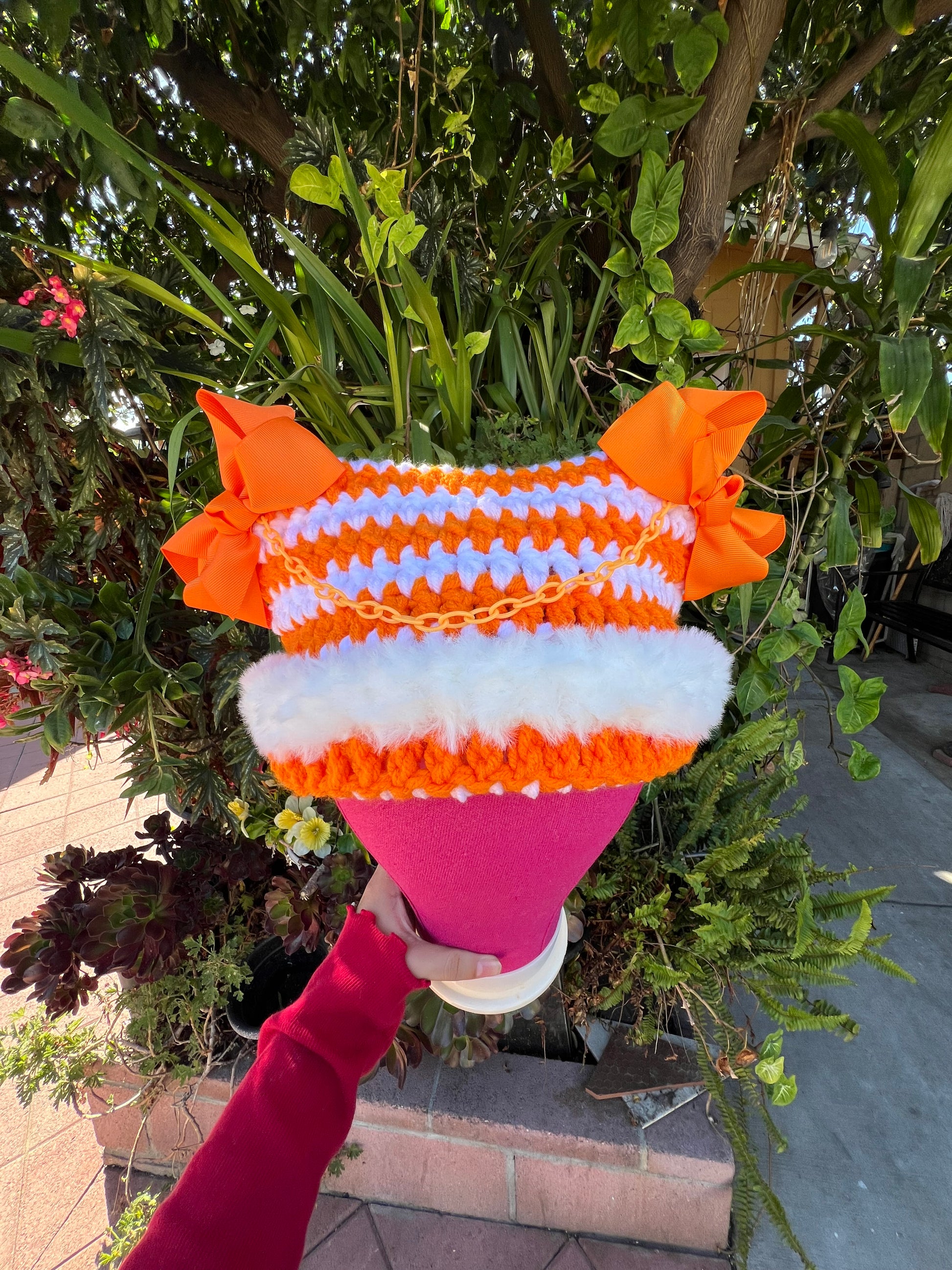 Bring out your playful side with this one-of-a-kind crochet cat beanie—a bold, cozy, and head-turning accessory that’s all about fun and self-expression. Whether you’re vibing at a festival, dressing up for a theme party, or just adding flair to your everyday look, this hat isn’t just wearable art—it’s your new conversation starter.