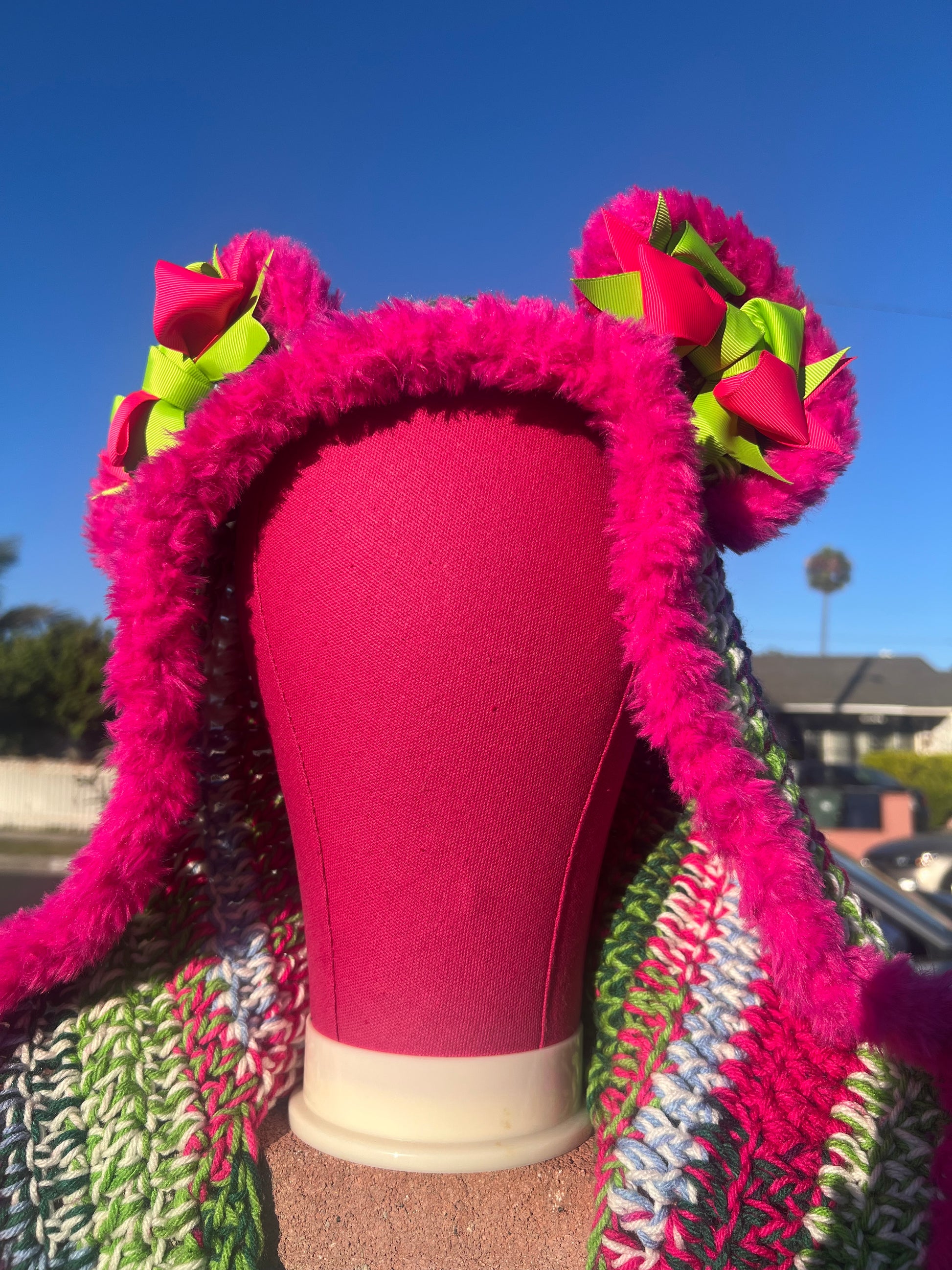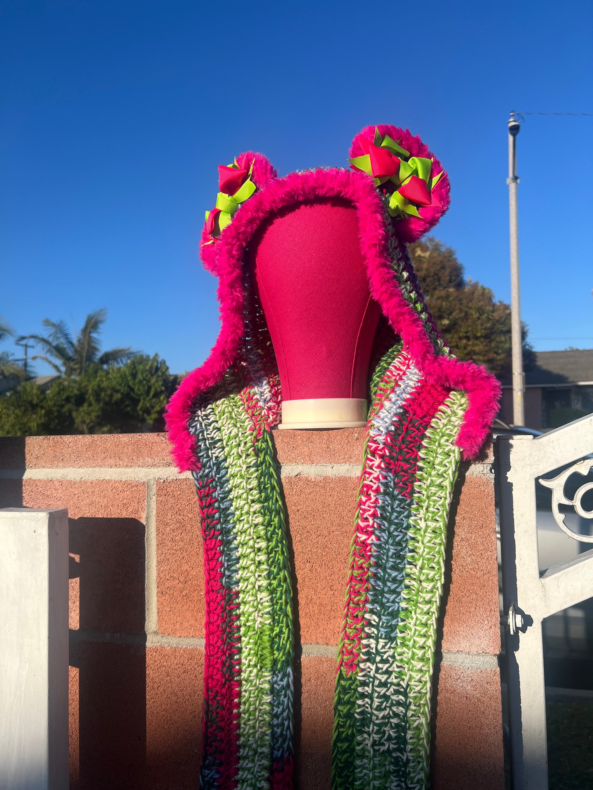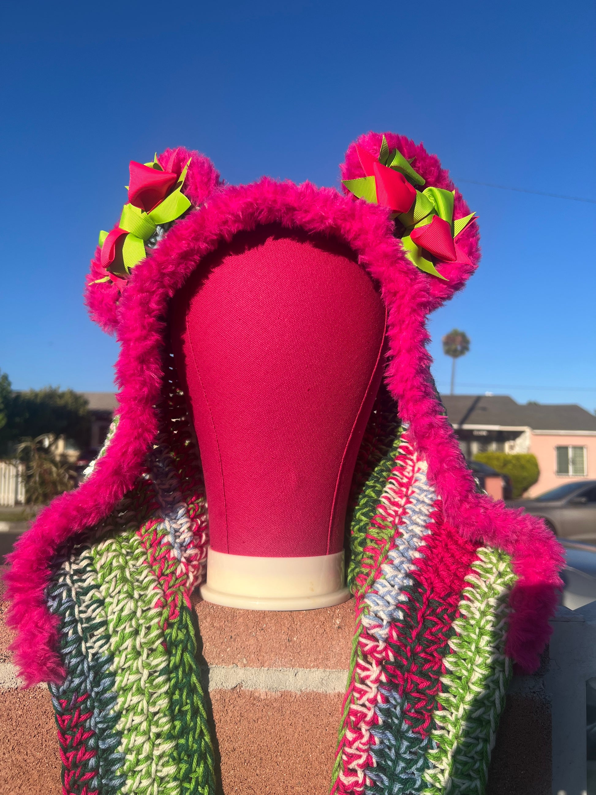 Unleash your wild side with this handmade Schoodie, a bold, cozy, and playful accessory that turns heads and spreads smiles. Perfect for festivals, costume parties, or just expressing your unique vibe, this piece isn’t just wearable art—it’s a conversation starter. Each hood is meticulously crocheted with love, ensuring that no two are exactly alike.